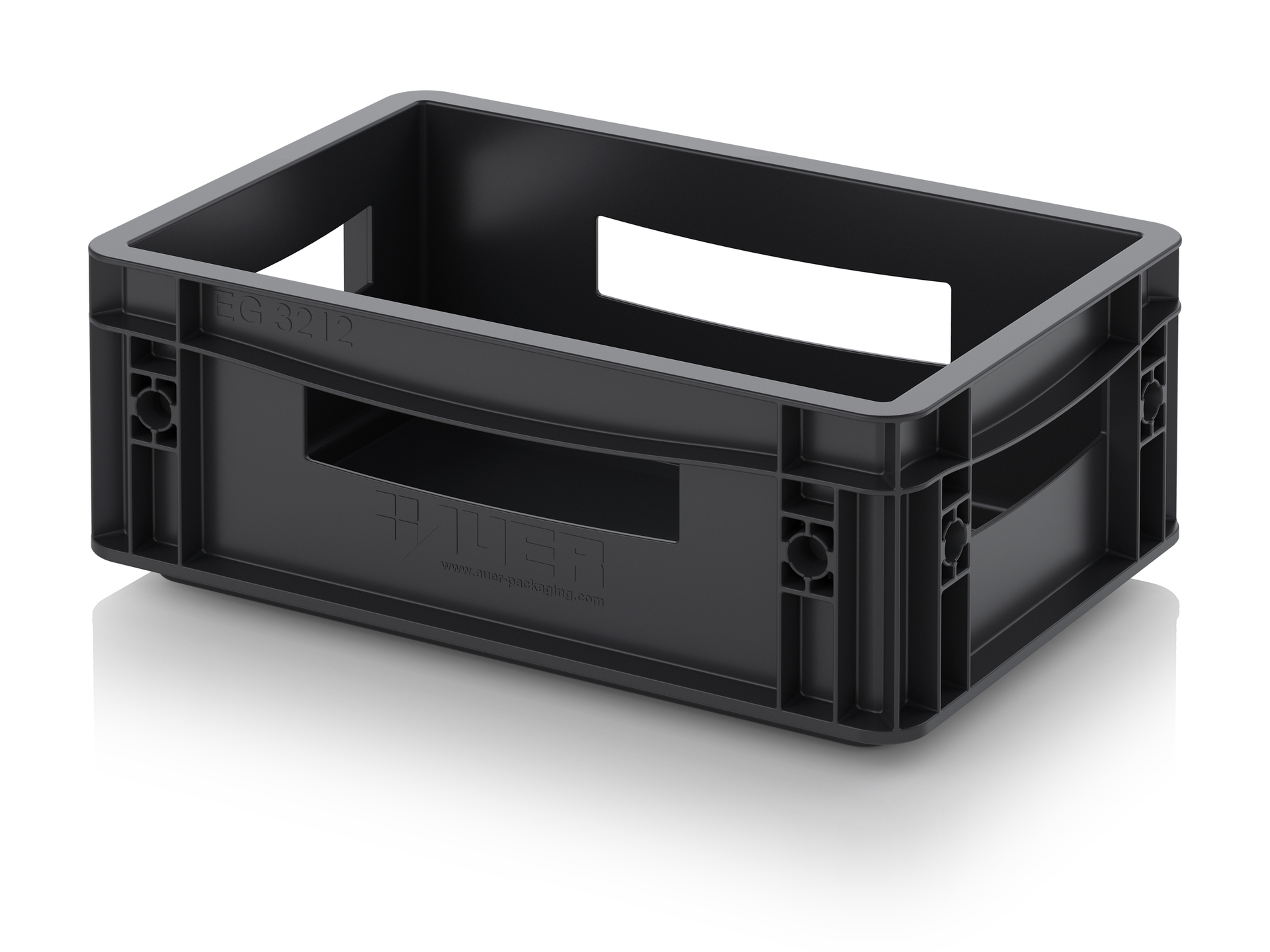 Евроконтейнер с ESD-защитой производства компании AUER Packaging изготавливается из антистатической пластмассы, что делает его пригодным, в частности, для надежного хранения и транспортировки электронной продукции.