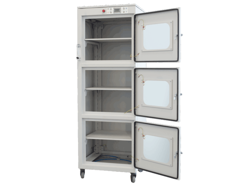 Шкаф сухого хранения,  предназначен для хранения печатных плат, SMD-компонентов, чувствительных к влаге, и других объектов. Он позволяет постоянно поддерживать заданный уровень влажности для качественного просушивания содержимого в течение 24 часов. Просушка осуществляется системой автоматического контроля.
