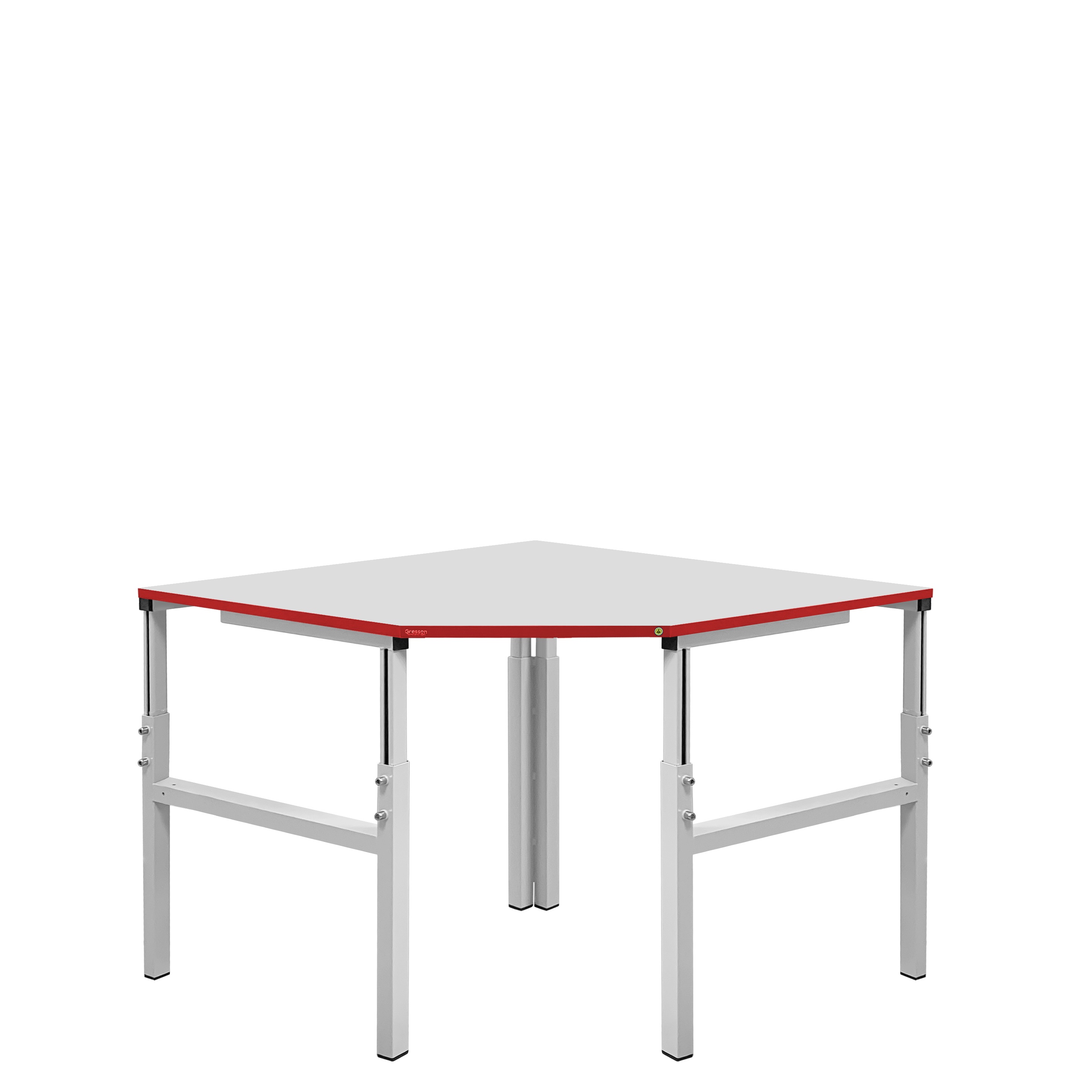 Стол антистатический, согласно требованиям стандарта  ГОСТ IEC 61340-5-1-2019, на лицевой стороне столешницы имеет маркировку esd.jpg — знак ESD (Electrostatic sensitive device), обозначающий работу с материалами, чувствительными к электростатическому разряду. Основу столешницы составляет плита, облицованная HPL ESD пластиком. В комплект поставки антистатического стола входит ESD набор для заземления столешницы — болт и провод с клеммой.