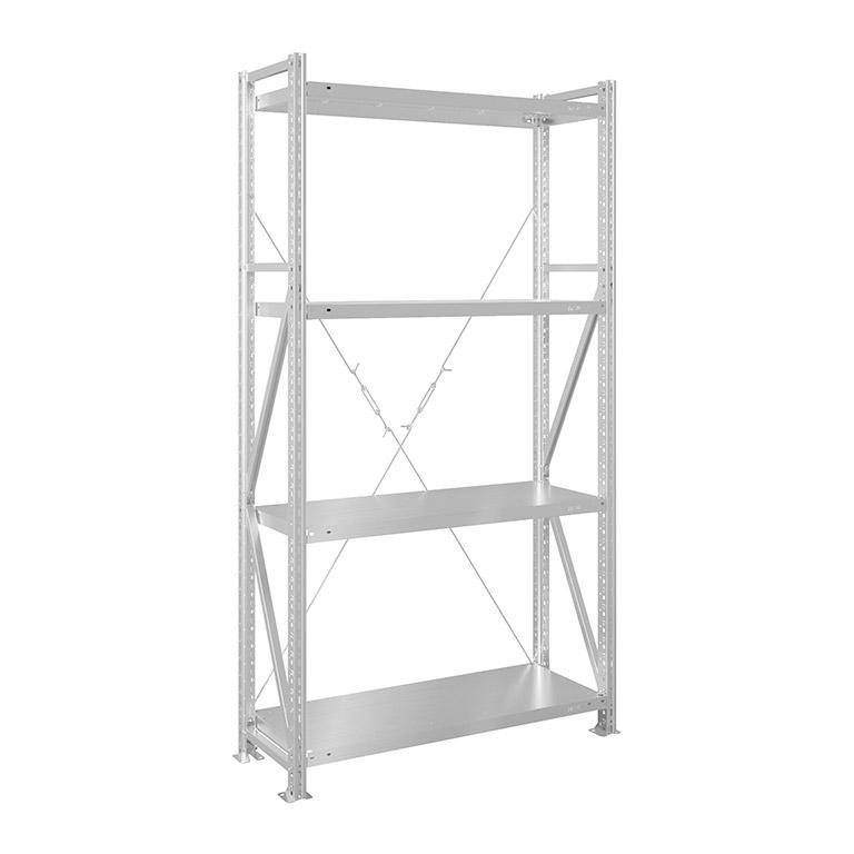 - Нагрузка на одиночную секцию стеллажа до 2000 кг (с двумя комплектами крестовин)
